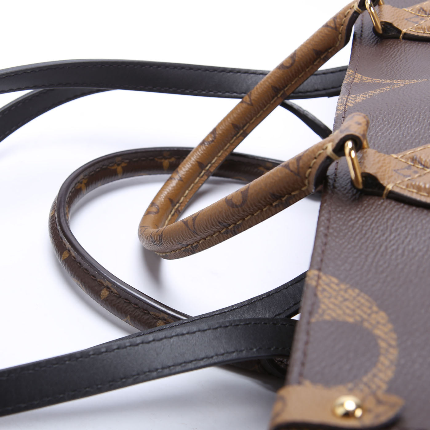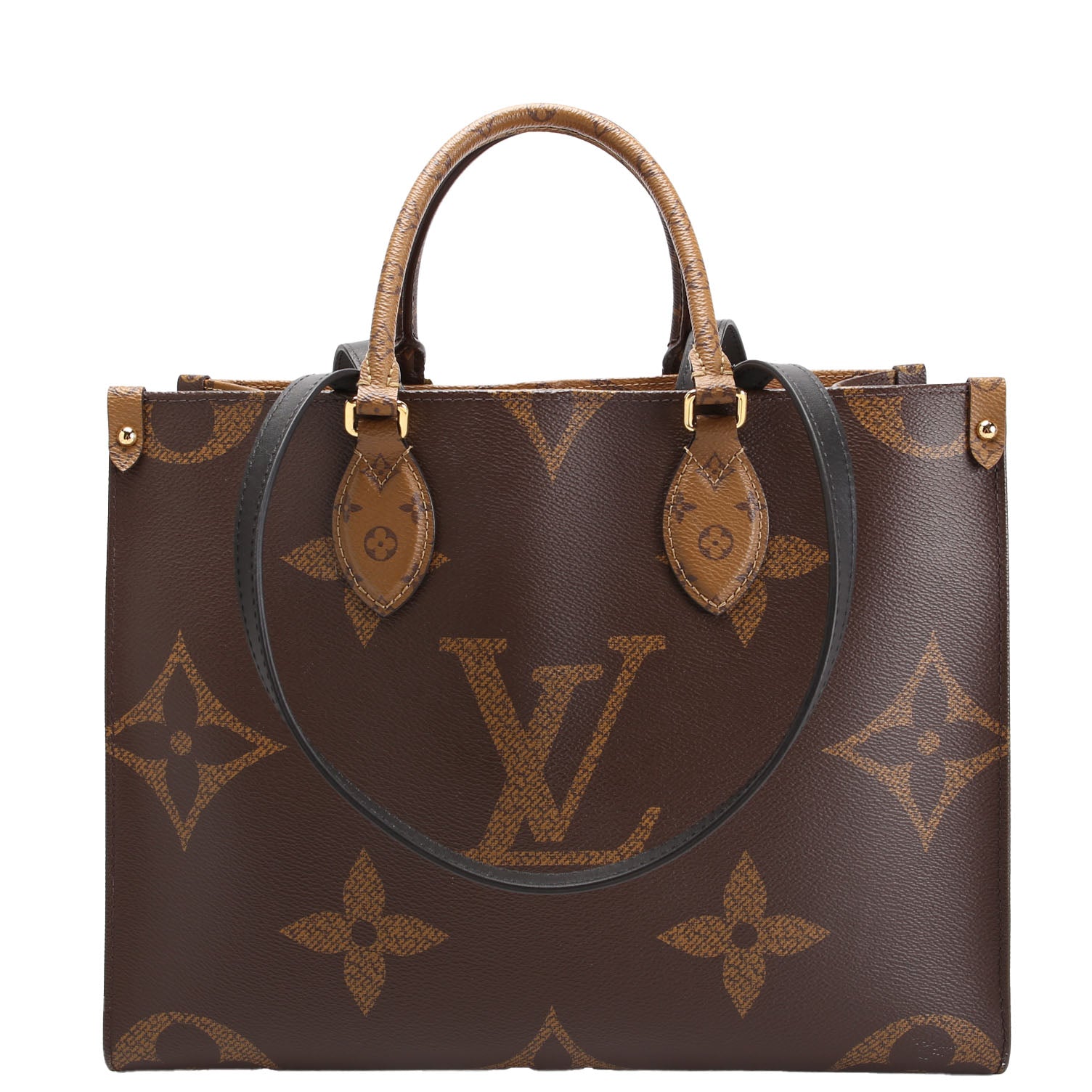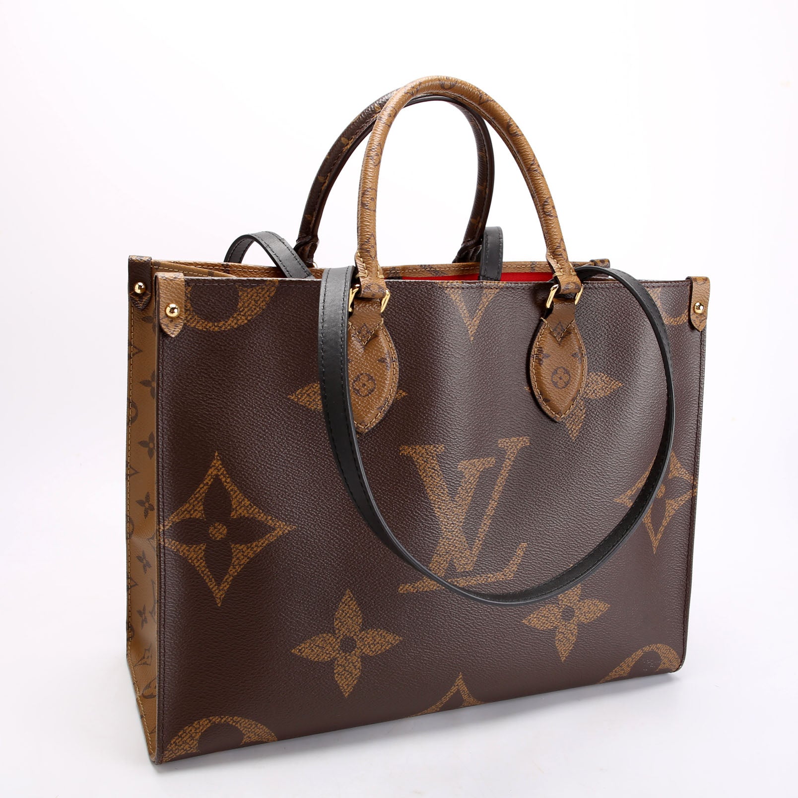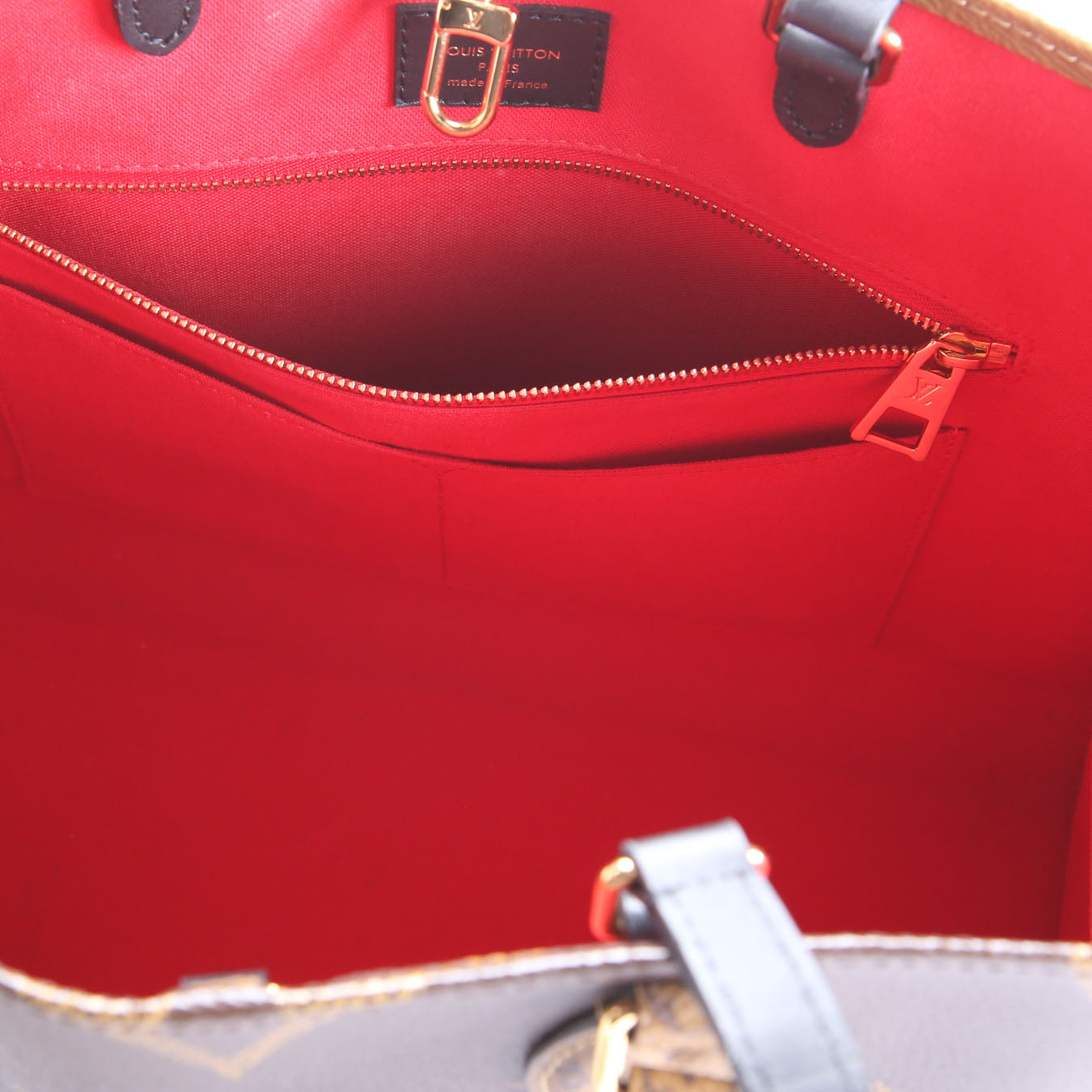 This pre-owned Louis Vuitton ONTHEGO MM is guaranteed 100% authentic. The exterior is in the classic Louis Vuitton Reverse Monogram coated canvas.