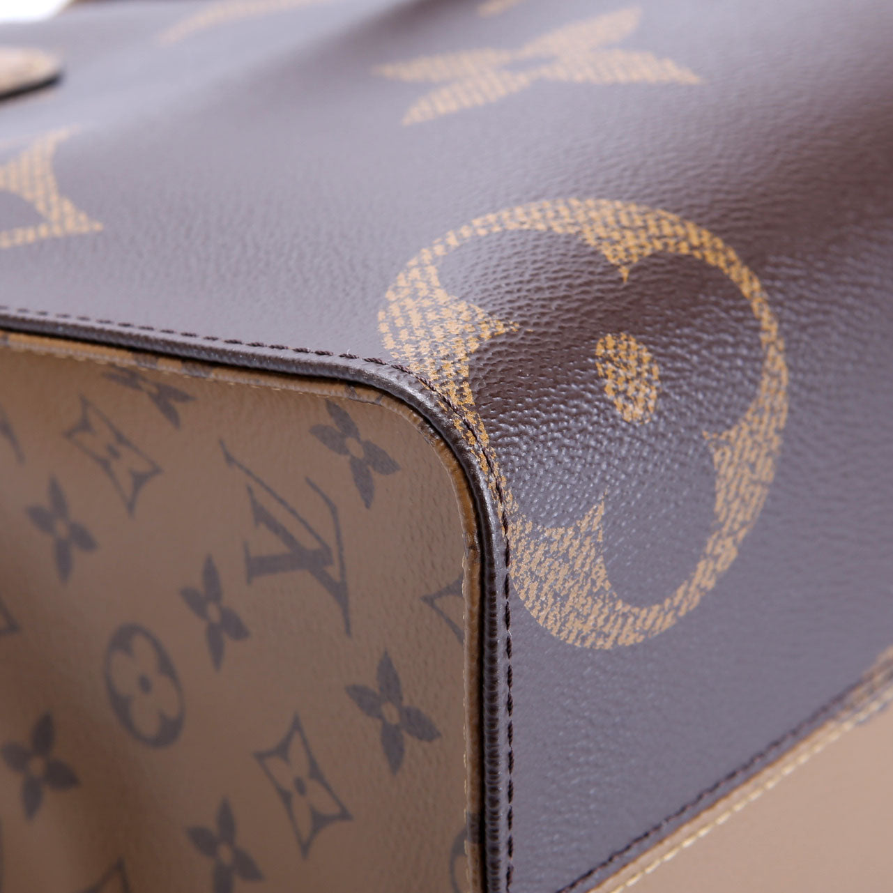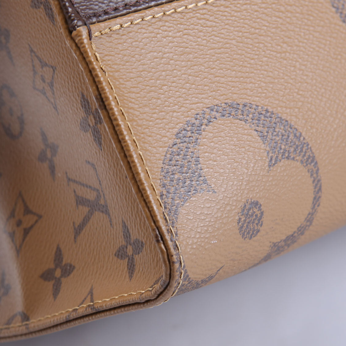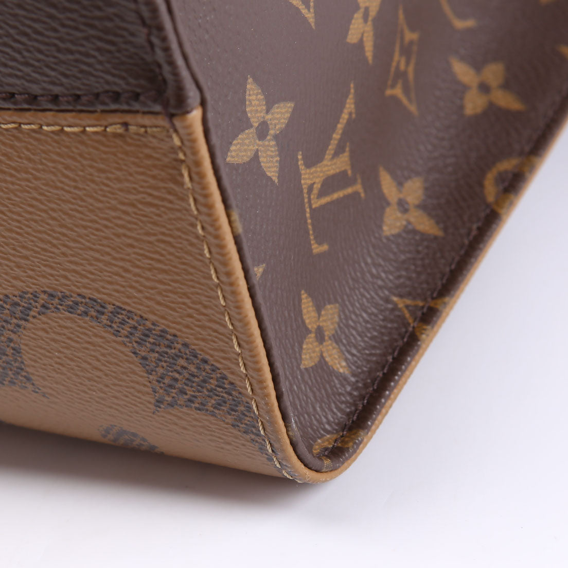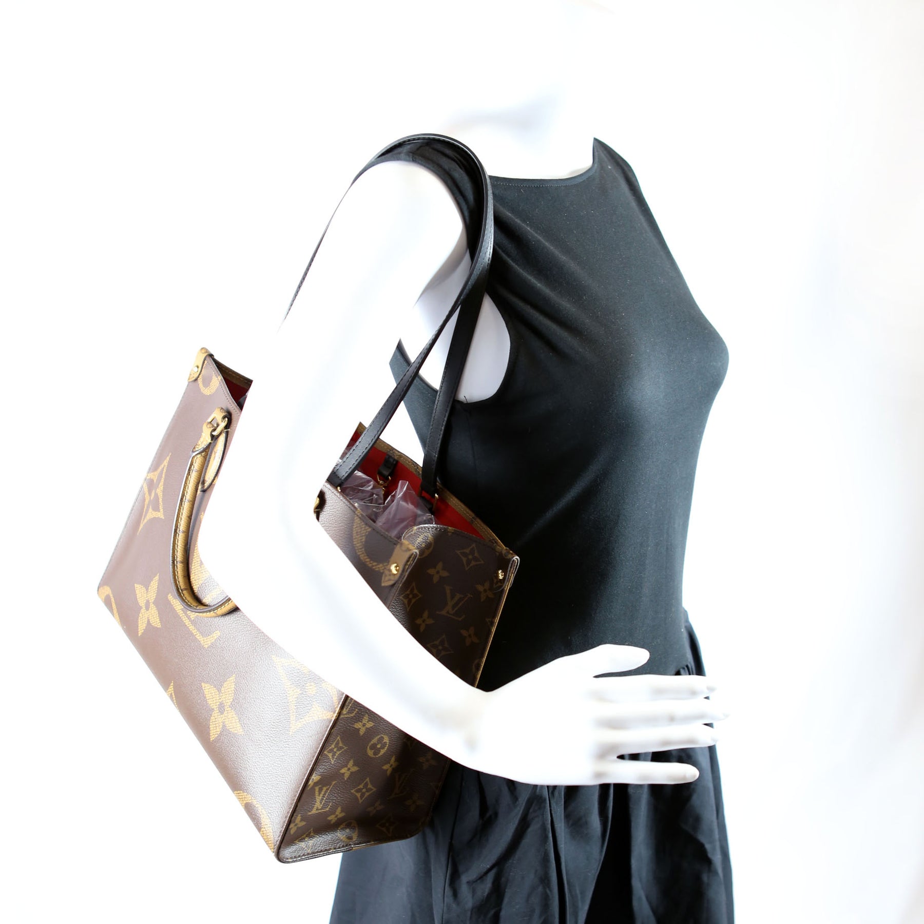This pre-owned Louis Vuitton ONTHEGO MM is guaranteed 100% authentic. The exterior is in the classic Louis Vuitton Reverse Monogram coated canvas.