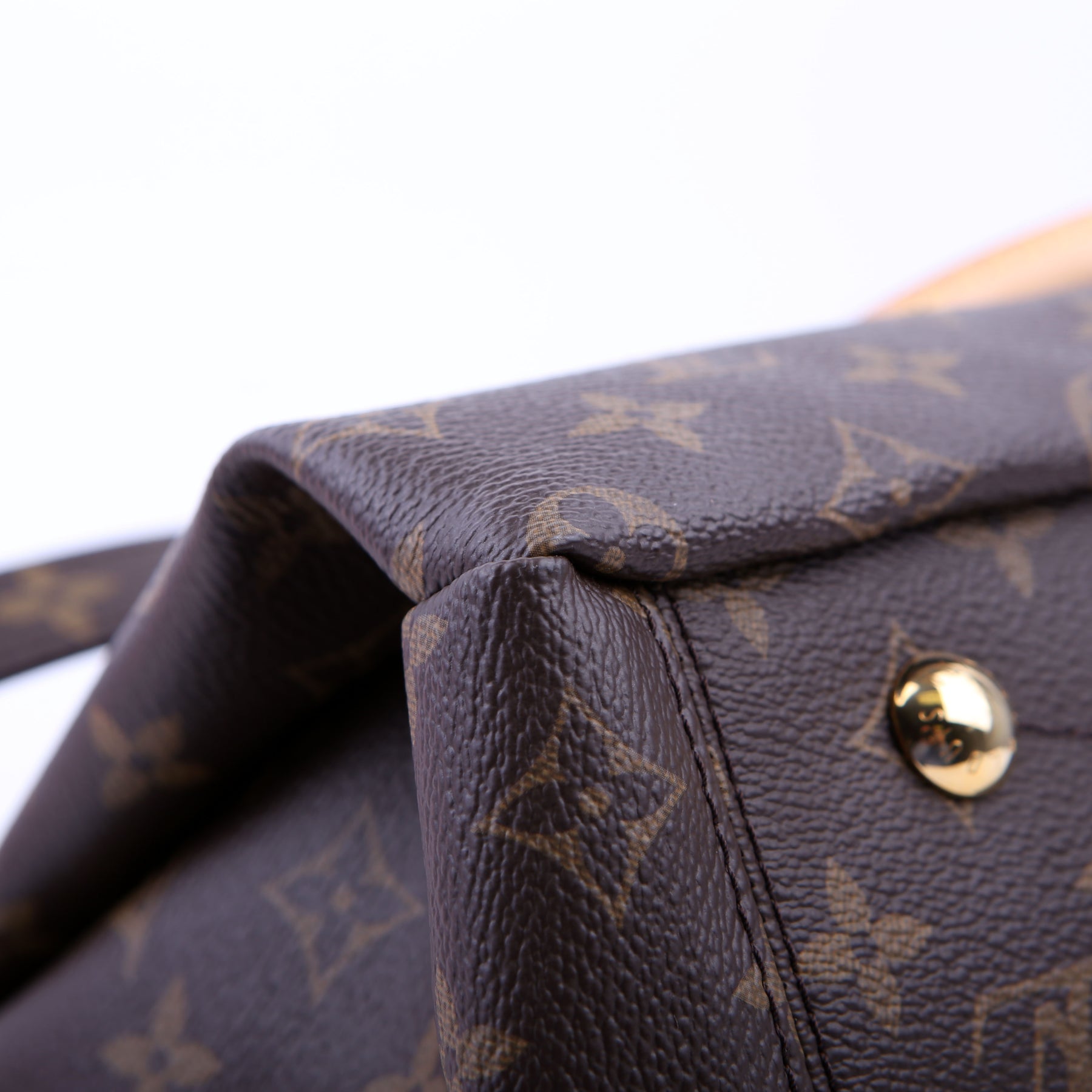 This pre-owned Louis Vuitton Pallas Tote Leather Side is guaranteed 100% authentic. The exterior is in the classic Louis Vuitton Monogram coated canvas.