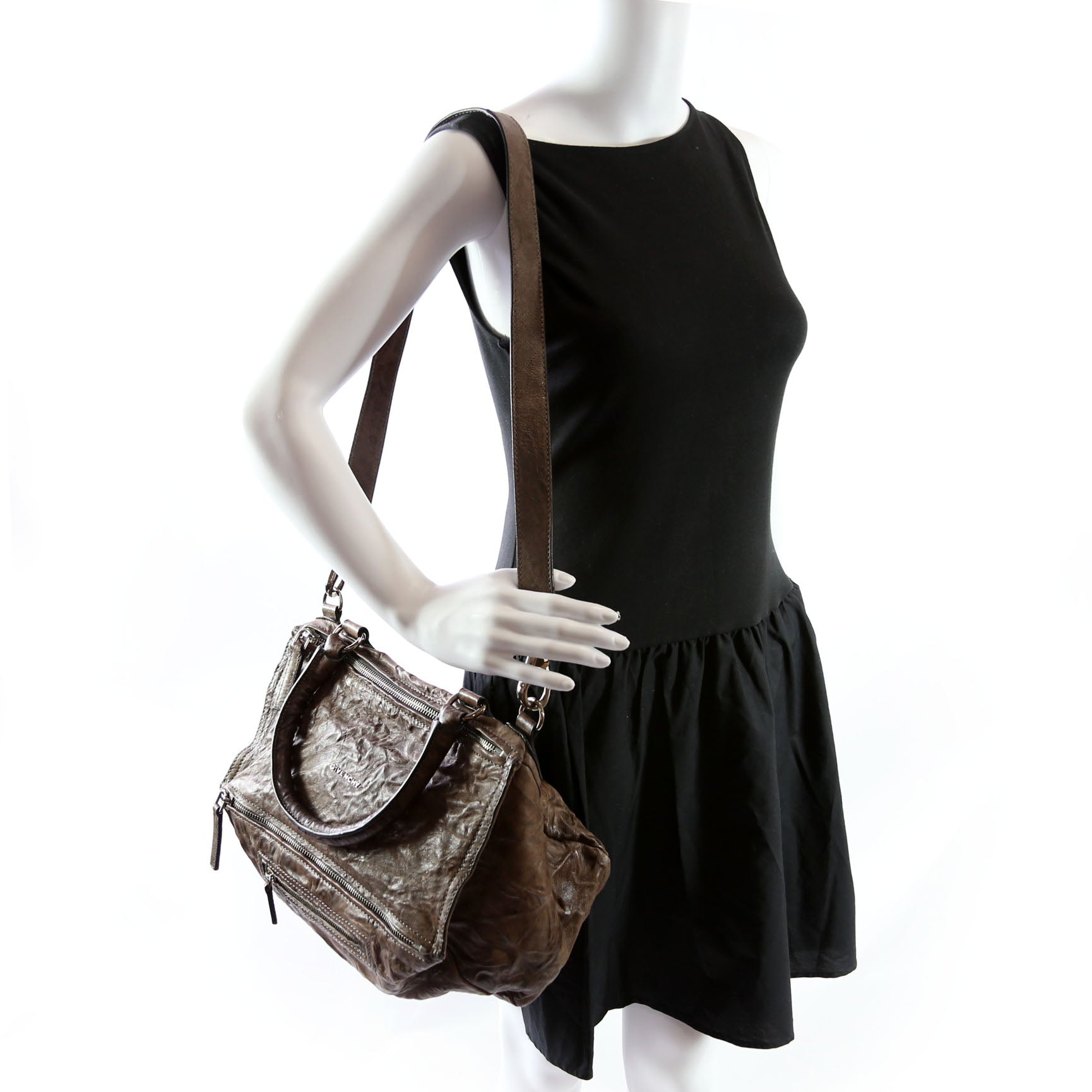This pre-owned Givenchy Pandora Satchel Medium is guaranteed 100% authentic. The exterior is in the classic Givenchy Calfskin.