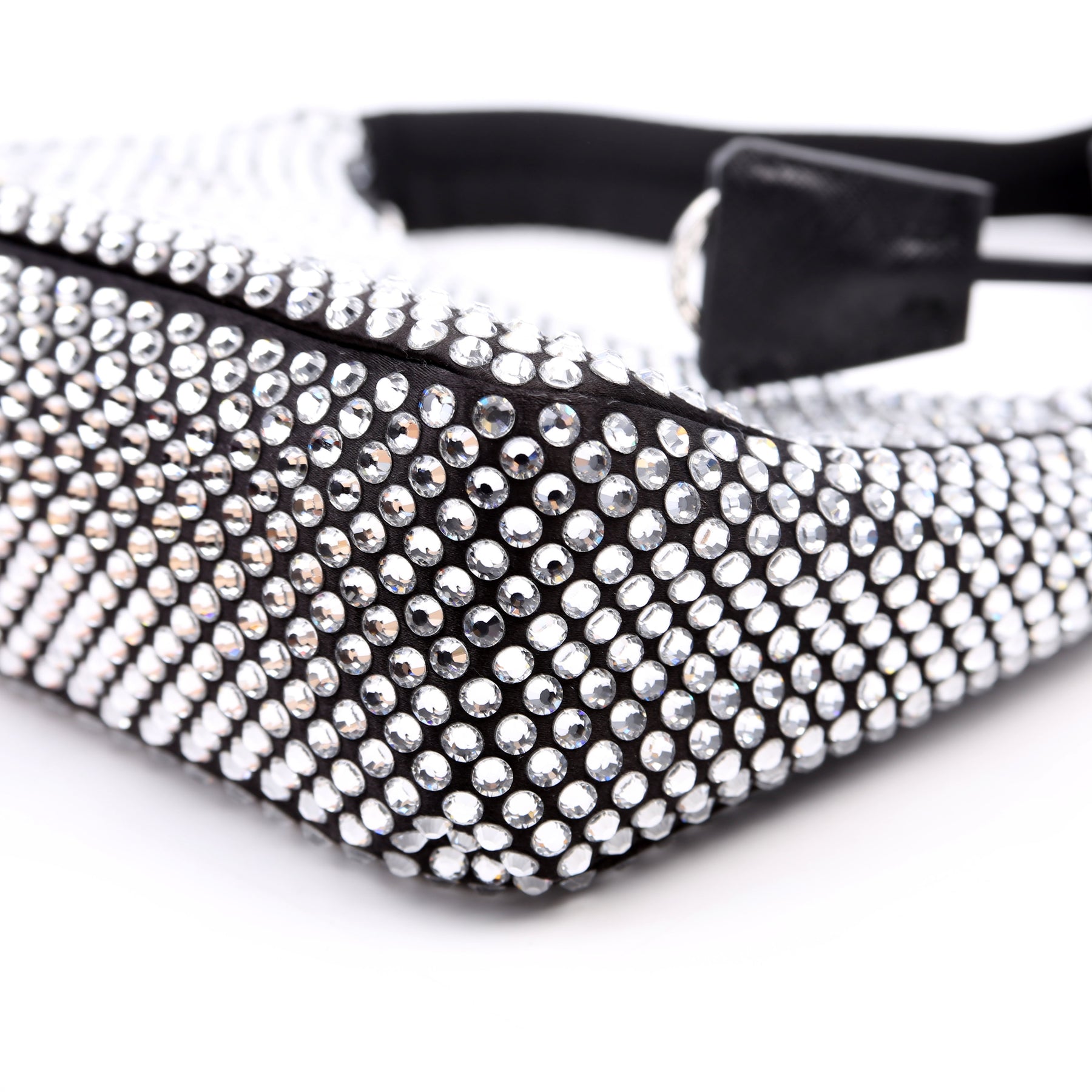 This pre-owned Prada Satin Re-Edition 2000 Crystal Mini Bag is guaranteed 100% authentic.