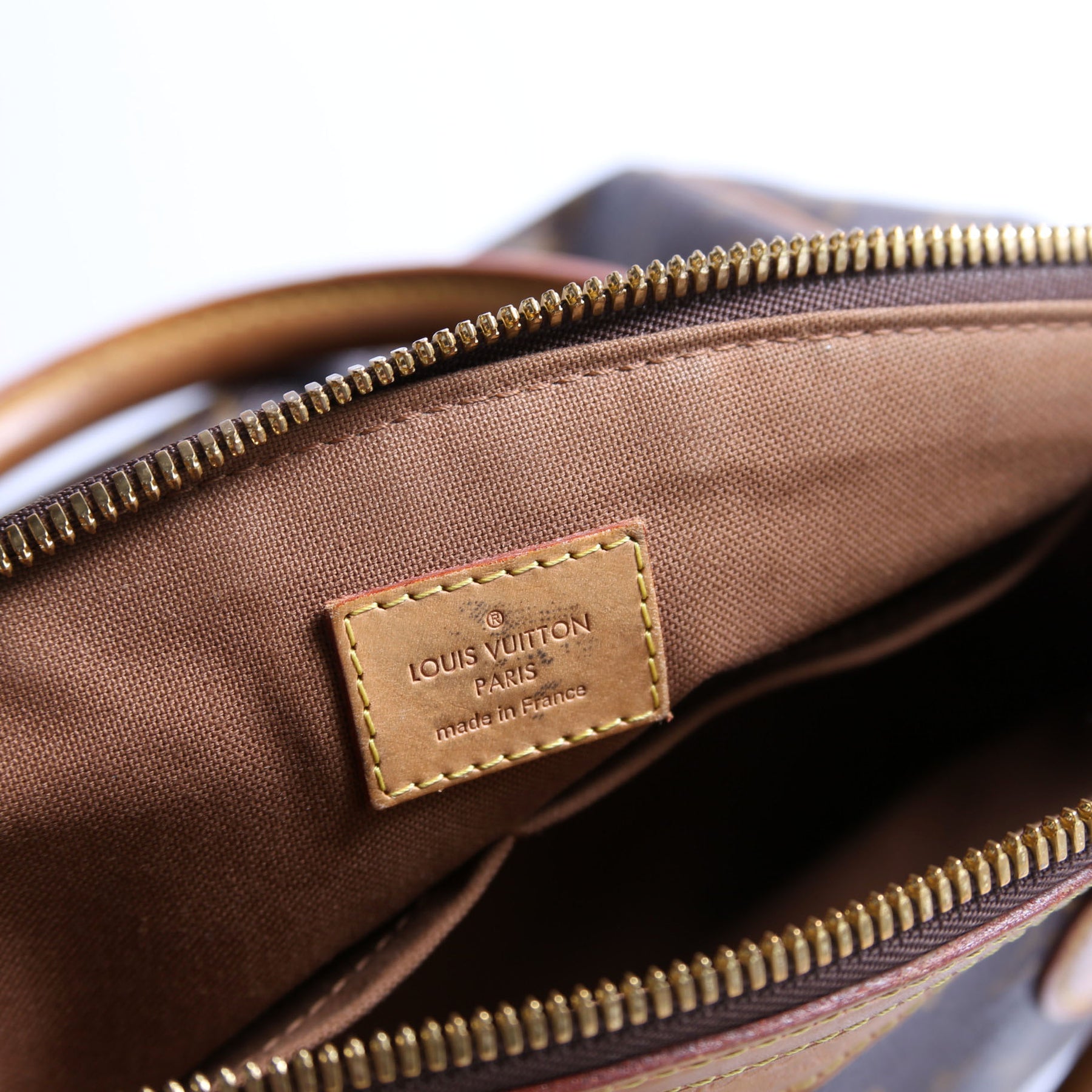 Hardware: The zipper operates properly and runs smoothly. The hardware shows wear and discoloration.