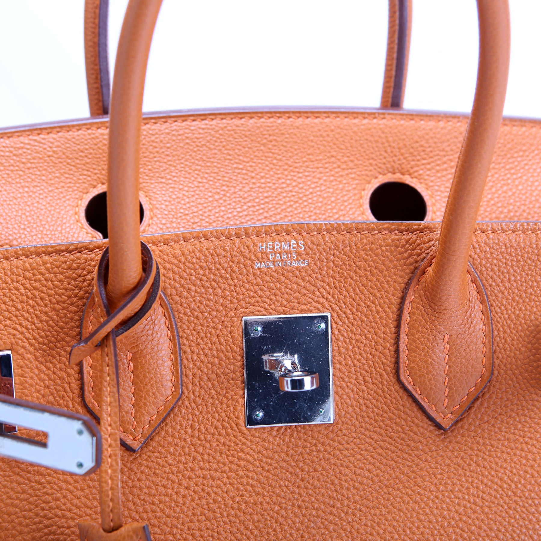 This pre-owned Hermes Togo Birkin 30 is guaranteed 100% authentic. The exterior is in the classic Hermes Togo leather.
