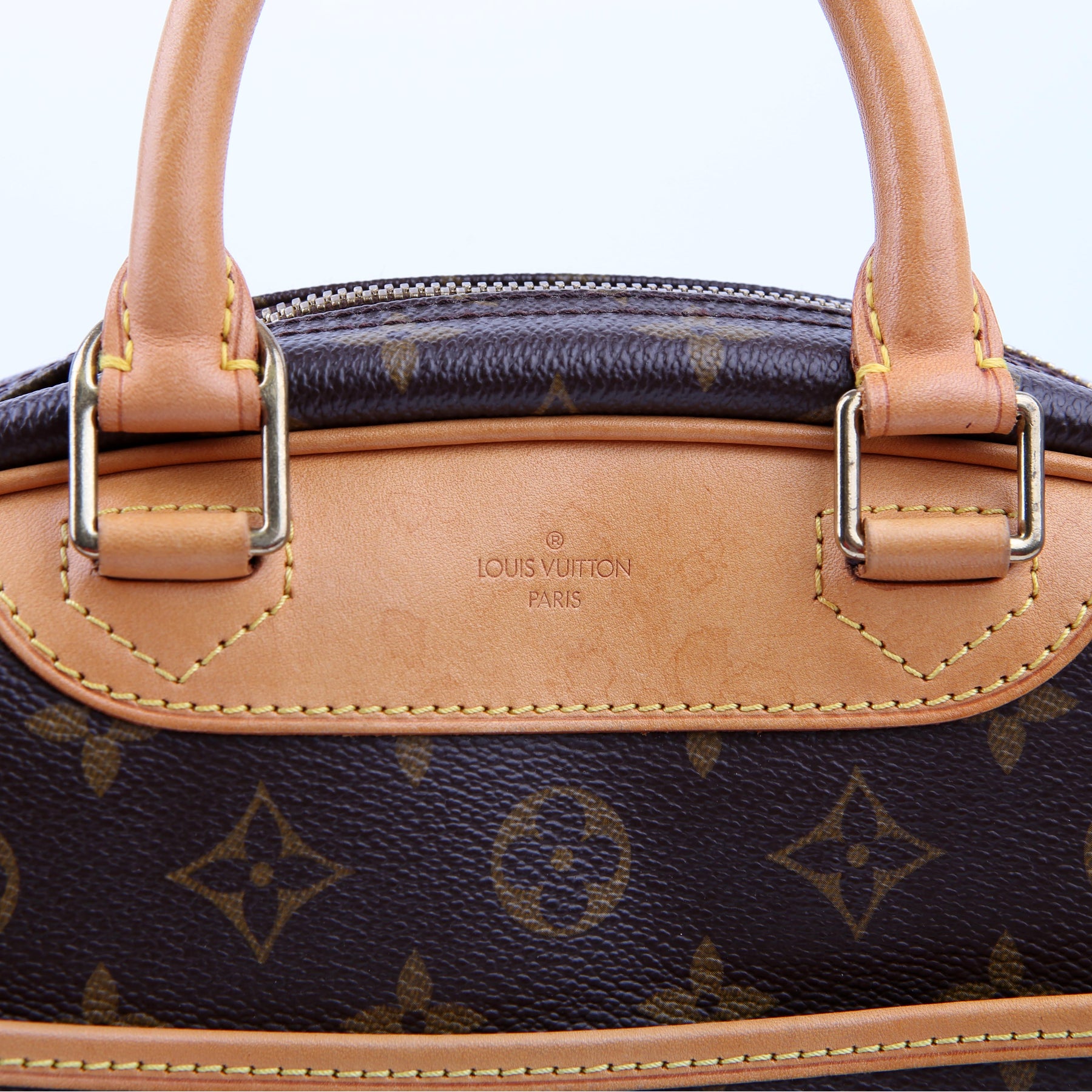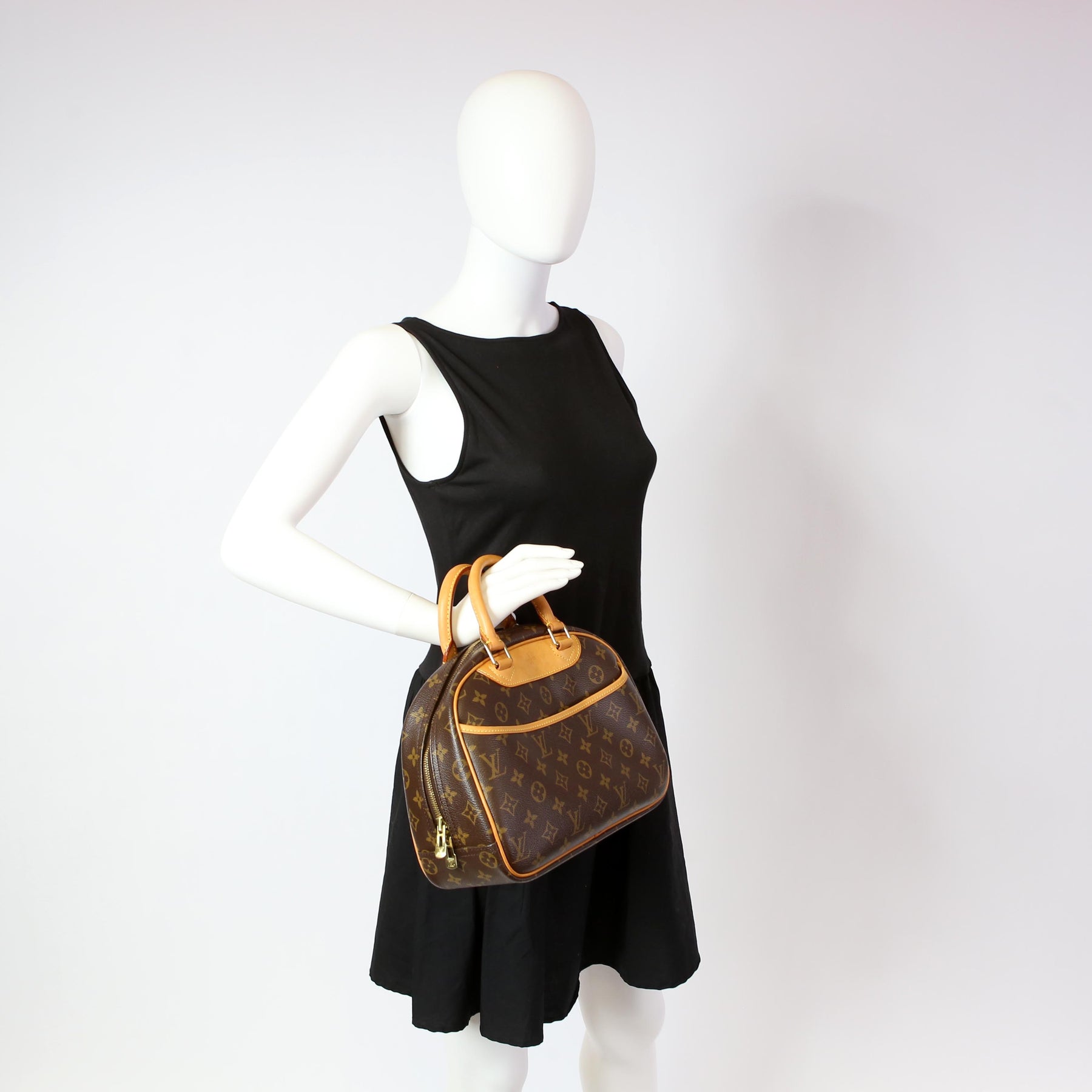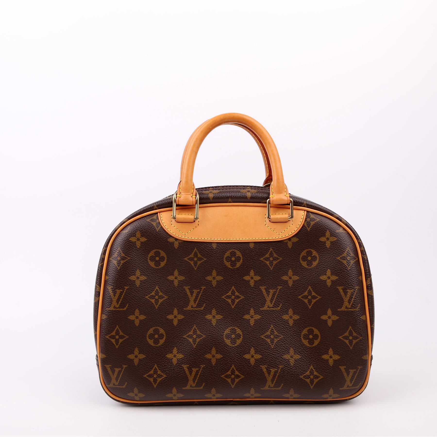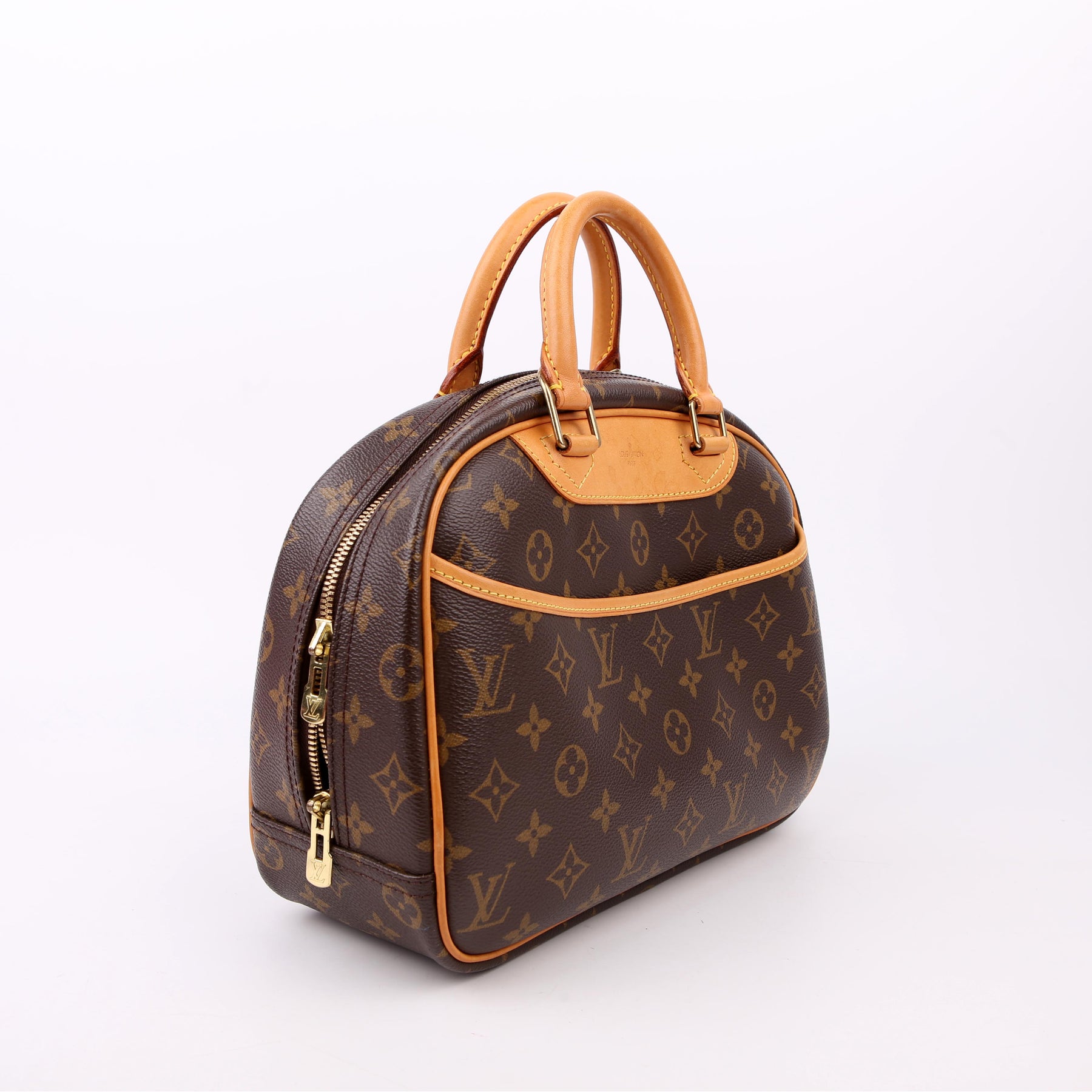 This pre-owned Louis Vuitton Trouville is guaranteed 100% authentic. The exterior is in the classic Louis Vuitton Monogram coated canvas.
