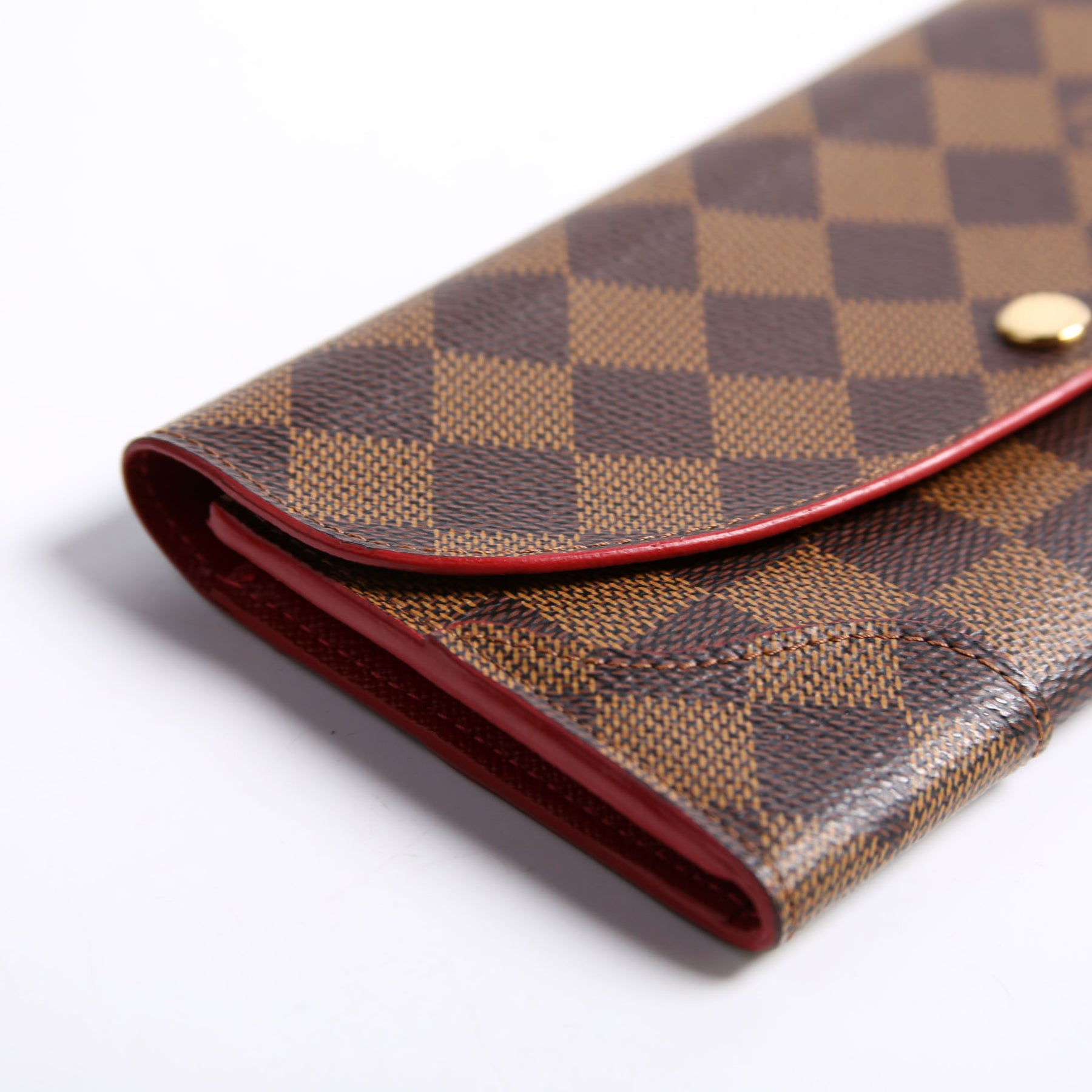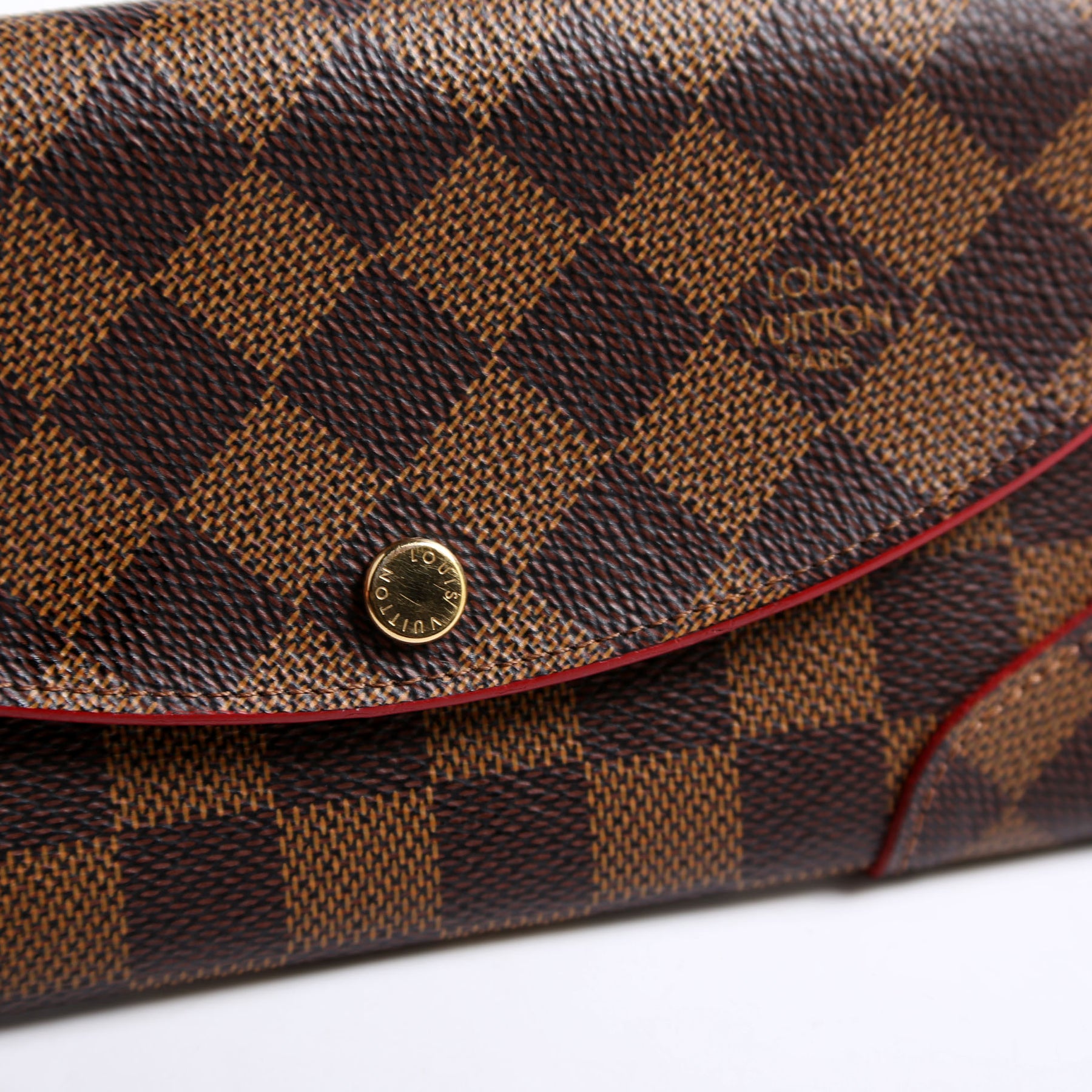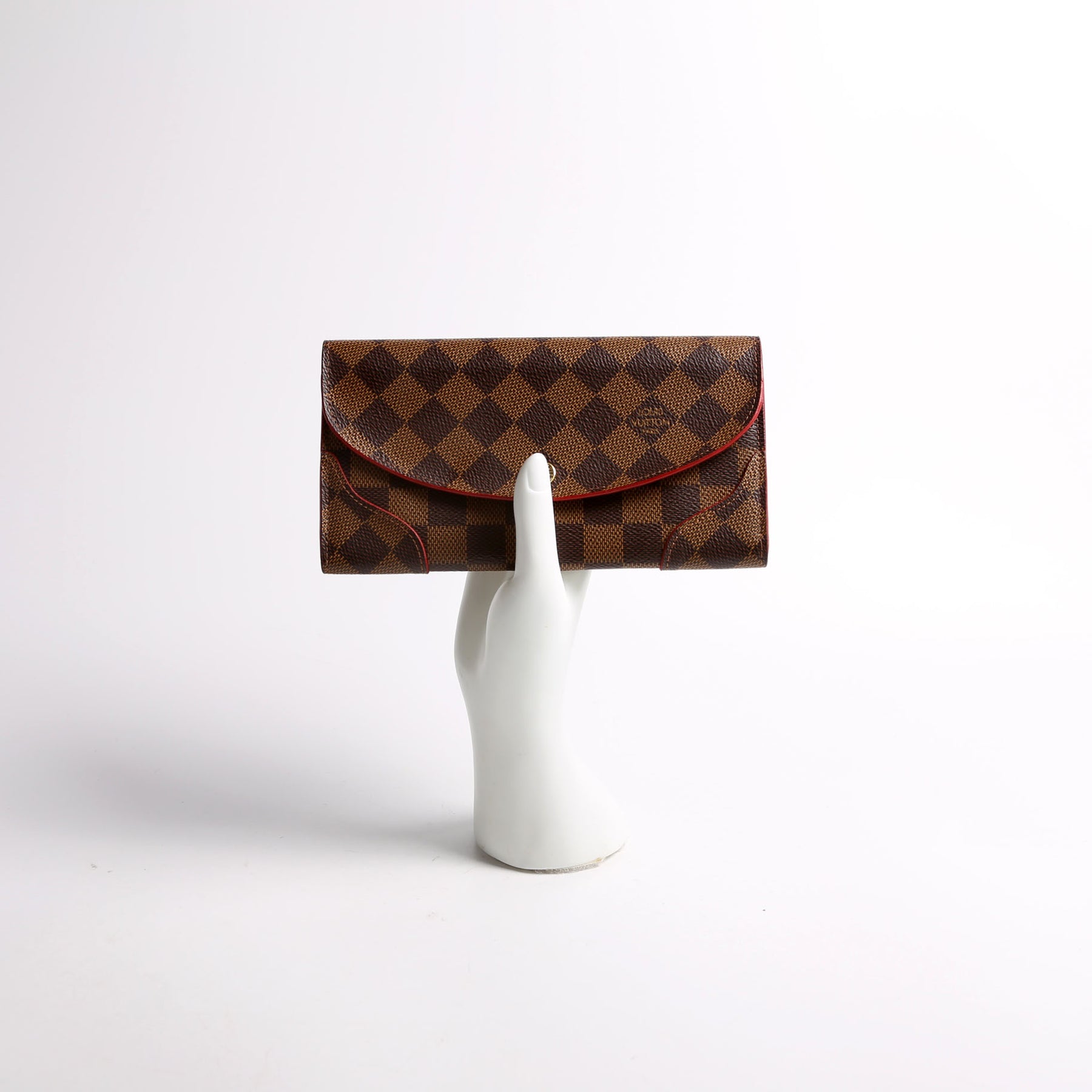 This pre-owned Louis Vuitton Caissa Wallet is guaranteed 100% authentic. The exterior is in the classic Louis Vuitton Damier Ebene coated canvas.