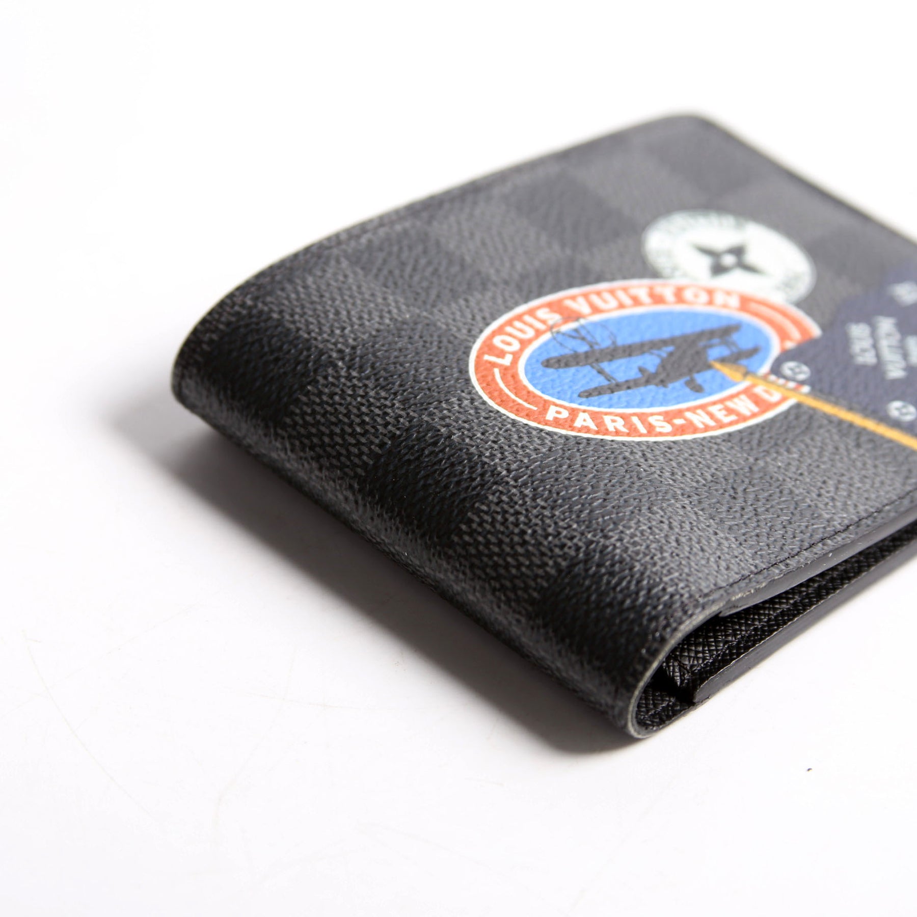 These pre-owned Louis Vuitton Mens Multiple Wallet World Tour are guaranteed 100% authentic. The exterior is in the classic Louis Vuitton Damier Graphite coated canvas.