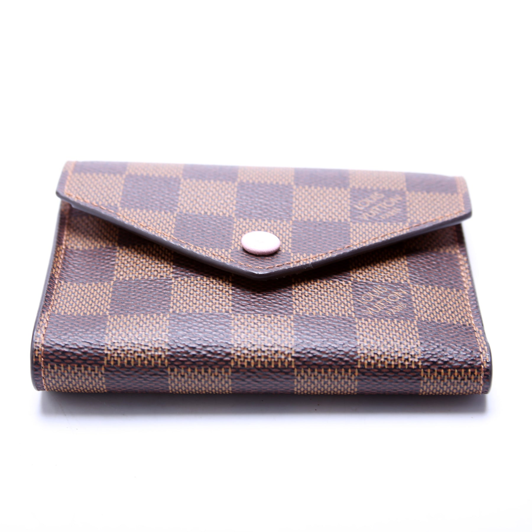 This pre-owned Louis Vuitton Victorine Wallet is guaranteed 100% authentic. The exterior is in the classic Monogram coated canvas.